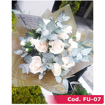 Ramo de 12 rosas con eucalipto y papel decorativo